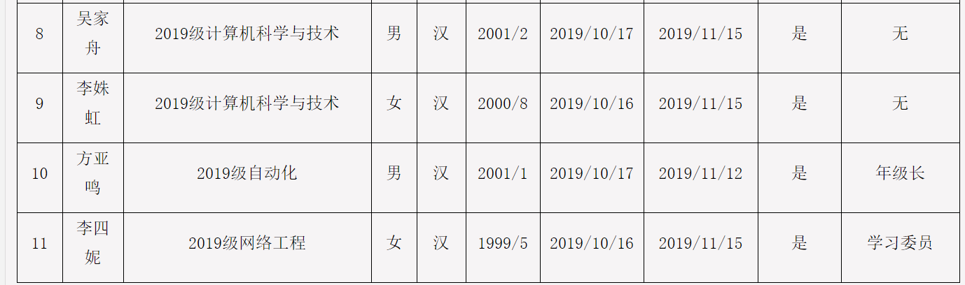 PA视讯党委关于确定武秀娟等11名同志为发展对象的公示经2019级本科党支部培养考察,在听取党小组、培养联系人、党员和群众意见的基础上,经党支部(或支委会)讨论,确定武秀娟等11位同志为发展对象。...