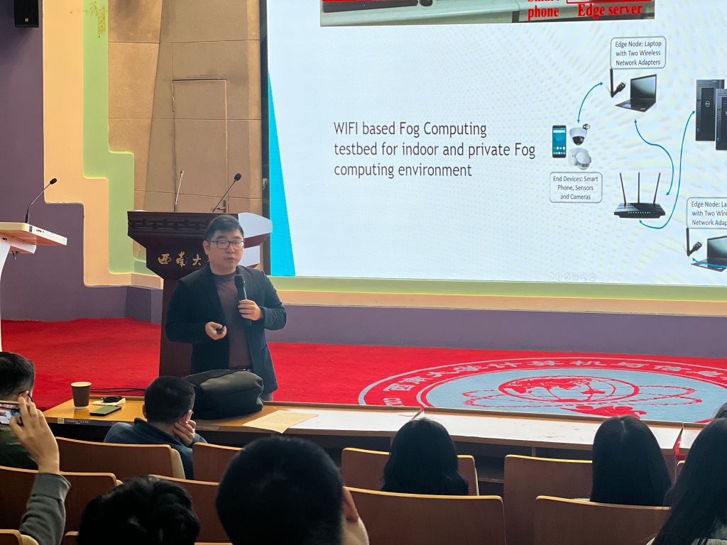 陈武教授致欢迎辞,介绍了刘晓副教授的研究兴趣和研究成果。刘晓副教授的研究兴趣主要包括工作流系统、云和边缘计算,以及以人为中心的软件工程。他在软件工程和服务计算著名刊物上发表了多篇论文,如ACM ToSEM、IEEE TSE、IEEE TC、IEEE TSC、JSS、WWWJ,以及ICSE、ASE、ICWS和ICSOC等会议。同时他还是《Journal of Software and Systems》的副主编及IEEE和ACM的高级成员。