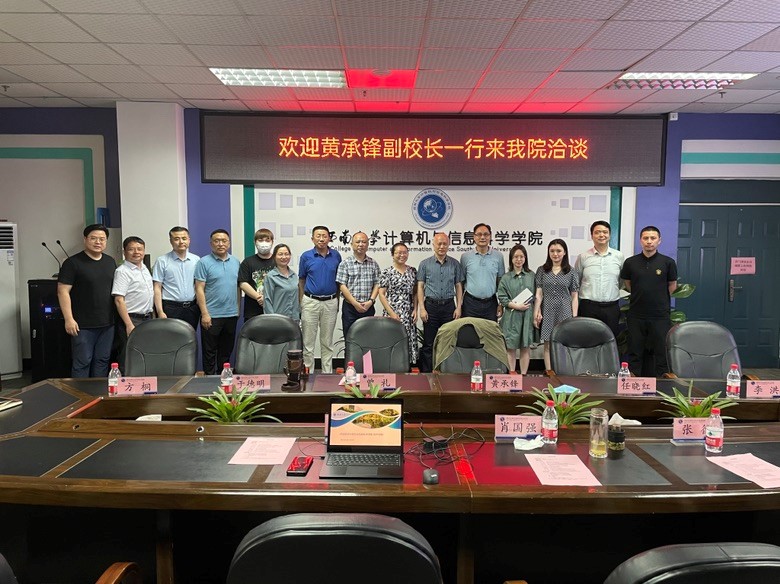 为进一步加强和深化重庆市校企、校校合作,推动学院共建共享产学研协同发展机制,5月25日下午,重庆交通大学副校长黄承锋一行12人到学院开展产学研协同合作调研洽谈工作。重庆交通大学副校长黄承锋、重庆文中科技股份有限公司董事长曾礼、重庆云厨明视暨重庆菜到佳科技有限公司董事长于德明、云厨明视科技有限公司总经理李洪、上丞科技总经理方桐、重庆交通大学教授任晓红等出席了会议,学院院长肖国强、副院长陈武、计算机科学系主任张衡参加了调研洽谈会。
