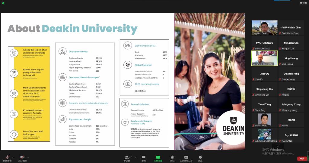 为进一步深化学院与迪肯大学信息技术学院的合作与交流,推动人才培养合作向科研合作扩展,12月1日、2日上午,学院与迪肯大学信息技术学院联合举办线上博士生学术研讨会。学院院长肖国强教授、副院长陈武教授、副院长陶丽副教授和迪肯大学信息技术学院副院长Mohamed Abdelrazek副教授、副院长Xiao Liu副教授出席了会议。双方共有5位教师受邀担任报告嘉宾,9位联合培养博士生作了研究汇报,近百名师生通过线上方式参与了此次研讨会。