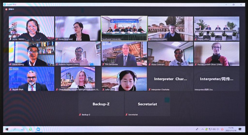 受新冠疫情影响,2场会议都采取视频会议形式举行。PA视讯出席会议的有陈时见副校长,国际合作与交流处、教务处和人力资源部负责人,及我院党政领导;奥克兰大学出席会议的有副校长吉姆·梅特森教授,以及奥克兰大学国际部、理学部负责人;西澳大学出席会议的是副校长塔耶布·沙阿教授,西澳大学国际部和工学院的负责人。