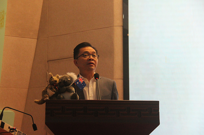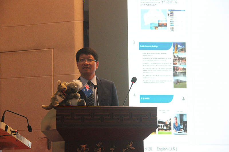 随后,迪肯大学信息技术学院院长约翰·雅伍德教授为大家详细介绍迪肯大学和信息技术学院,并详细讲解了针对中外合作办学学生的各类优惠政策,同学们都表示很感兴趣,学院的学术带头人张自力教授为大家翻译。