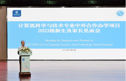 计算机科学与技术专业(中外合作办学项目)2023级新生及家长见面会于9月9日下午在圆顶3楼报告厅举行。出席见面会的有新西兰奥克兰大学理学部(国际)副部长Sebastian Link、学院副院长廖剑伟、计算机科学与技术系副系主任邹佺、2022级辅导员杨靖欣、2023级辅导员李飞阳以及AEMG教育集团西南项目分部主任王番等相关负责人。学院2023级计算机科学与技术专业(中外合作办学项目)的新生及家长参加了交流会。交流会由廖剑伟副院长主持。
