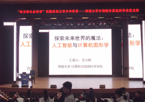 图1:计算机科学系党支部王小刚老师在科普活动中担任主讲