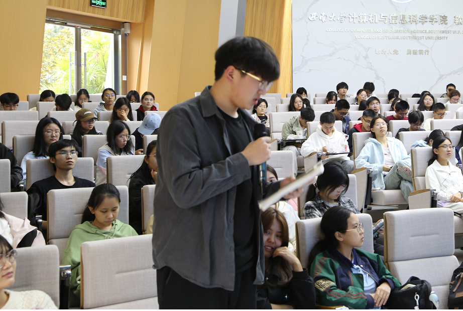 苑志慧老师从如何做师者、如何做行者、如何做智者三个方面分享了自己的见解,他表示师范生作为教师的储备力量,需要以师者的标准规范自己的品德,以行者的态度走好自己的道路,以智者的要求规划自己的未来。同时,他结合自己的亲身经历,向在场的同学介绍了信息技术教师在学校的工作内容,表示计算机科学与技术专业的师范生要以学生的需要为目标,不断提高自身的知识积累和能力提升。