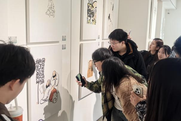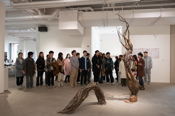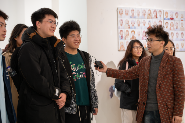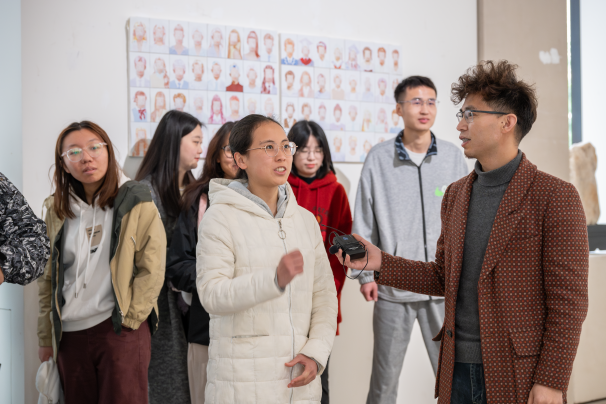 活动伊始,李馆长首先向同学们首先解析圭来艺术馆名称的由来:“归去意犹未尽,来兮满心欢喜。”希望每一位来到这里的同学都能够感受到艺术的力量和魅力,激发内心的灵感和想象力,找到自己独特的艺术之旅。圭来艺术馆3月展览以“自由生长”为主题,PA视讯美术学院雕塑系诸多作品集中亮相。李馆长为同学们讲解每一件作品背后的故事,引导同学们分享个人审美感受,同学们沉浸其中,或驻足凝思,或低语交流,享受这惬意的艺术时光。来到展馆二楼,无数国画映入同学们的眼帘,山水、花鸟、人像、诗词......饶有意趣的作品透露出山野情趣,引得同学们赞美与感叹;画上的题字也引得同学们讨论纷纷,笑语连连。