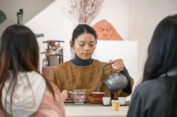 春分时节,雨霁云舒。3月21日下午,学院审美涵育系列活动之“艺术与茶韵邂逅”在北碚圭来艺术馆举行,本次活动特邀圭来艺术馆馆长李定其先生担任讲解老师,学院2024级辅导员马潇潇、唐瑞萱带领各年级学生代表参加本次活动。