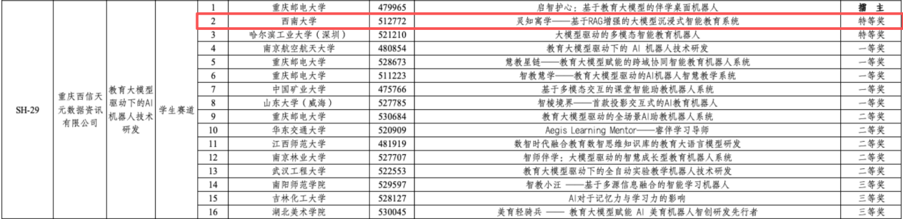 10月17日-20日,备受瞩目的第十九届“挑战杯”全国大学生课外学术科技作品竞赛2025年度中国青年科技创新“揭榜挂帅”擂台赛终审决赛在上海市徐汇区举行。经过激烈角逐,学院师生凭借卓越的科研创新能力、扎实的学术功底与顽强的拼搏精神,在全国数以万计的参赛团队中脱颖而出,《灵知寓学-基于RAG增强的大模型沉浸式智能教育系统》项目荣获决赛“人工智能领域”全国特等奖,实现历史性突破!
