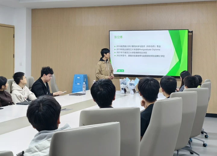 10月31日下午,学院在1320会议室成功举办2025年第2期“引航U声”优秀院友分享沙龙,主题为“从零到IT博士”。活动邀请了计算机科学与技术(中外)专业院友、奥克兰大学在读博士生张立博和王钟声担任分享嘉宾,分享成长经历与科研心得。