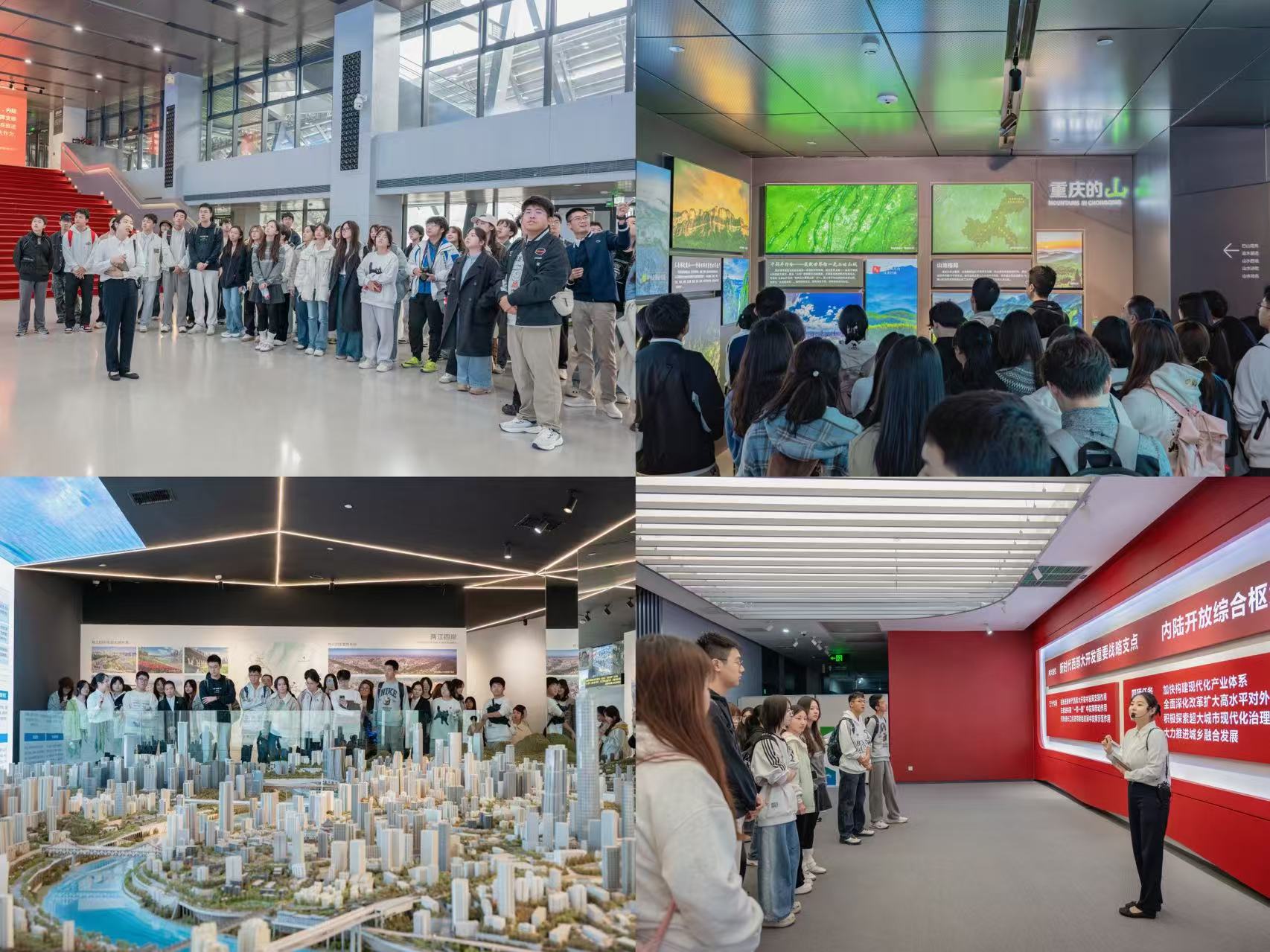 仪式结束后,学员们乘车抵达实地研学首站——重庆市规划展览馆。在讲解员的引导下,大家依次参观了馆内11大主题展厅。从壮丽的自然山水到深厚的历史文脉,从清晰的战略规划到各区县的特色风采,全景式展陈帮助大家系统构建了对重庆城市风貌、历史传承与未来蓝图的认知体系。学员们认真聆听、踊跃提问,在深入的观察与思考中,增进了对这座山水之城发展脉络的理解,也深化了对国家宏伟蓝图的情感认同。