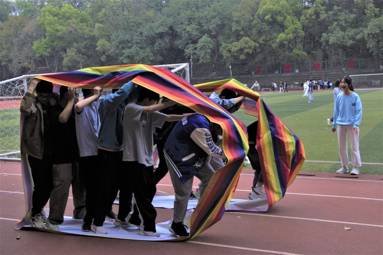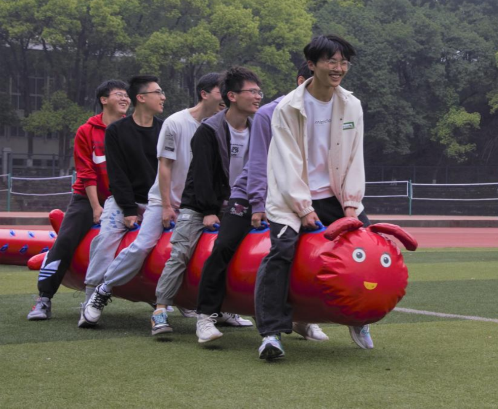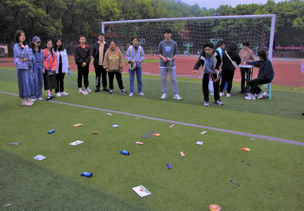 趣味游戏形式丰富多彩,众多项目吸引着同学们的目光,大家份份跃跃欲试,全身心投入活动。“毛毛虫竞速”跑道上不断传来欢声笑语,“乒乓球接力”、“羽毛球发球进框”场上配合默契,同学们还在“投飞镖”中感受百发百中的喜悦、在“无敌风火轮”、“六人七足”中你追我赶、在“套圈圈”中收获奖品和快乐。