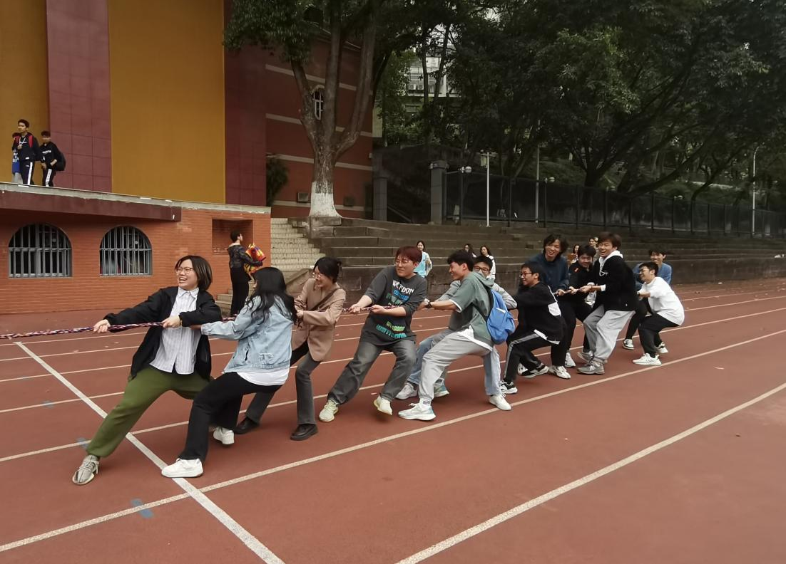 开幕式后,“师生拔河赛”、“师生篮球赛”和趣味运动会相继开展。“加油,加油!”在同学们的一声声呐喊中,辅导员老师和同学们各自拼劲全力拔河。一声吼,一股劲,红绳不断摇摆,双方队伍互不相让,汗水挥洒赛场。三局过后,最终,辅导员老师队伍获得胜利。“师生拔河赛”拉近了老师和同学们的距离,使师生之间联系更紧密,老师和同学们都沉浸在拔河的欢声笑语中。