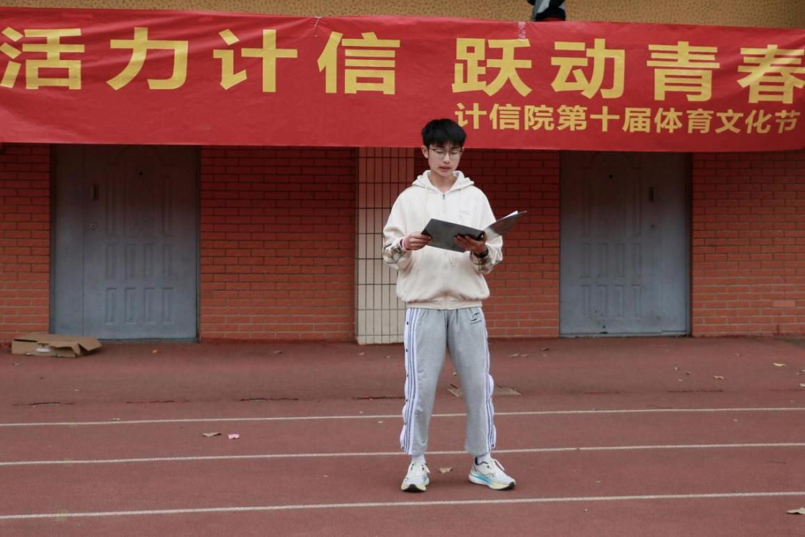 随后,2021级软件工程(中外合作办学)专业宋启宁同学作为学生代表发言,并倡议全院学生坚持运动、科学锻炼,培养良好的体育习惯,发扬团结友爱的体育精神,享受运动的乐趣。
