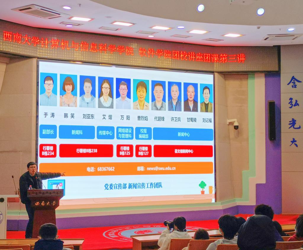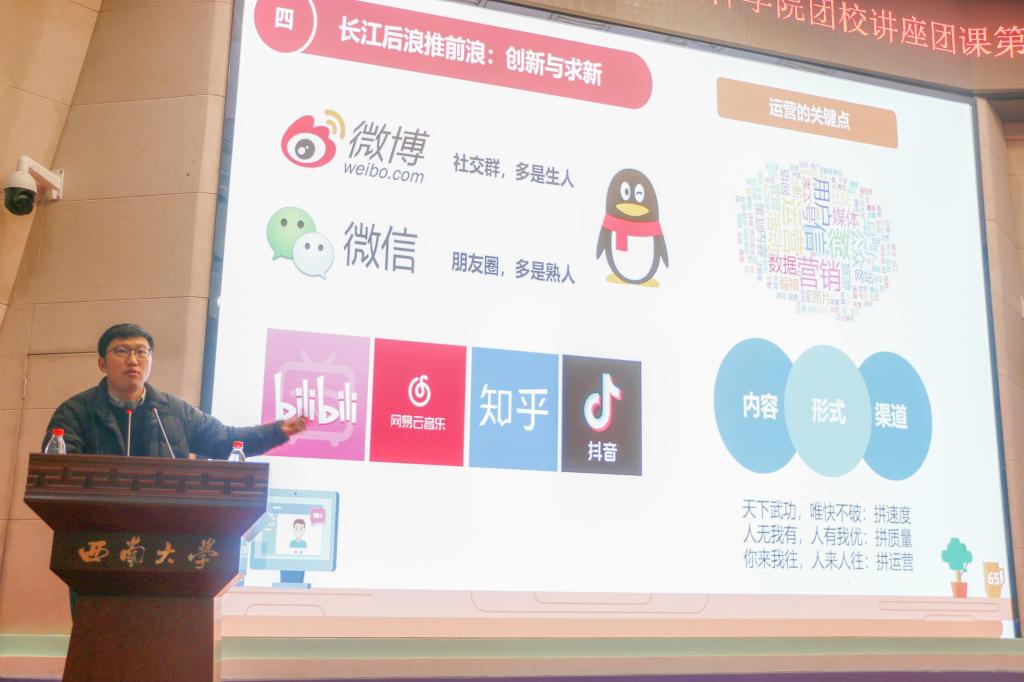 2021年12月12日上午9:30,我院在25教一楼报告厅举行以“新媒体宣传技巧”为主题的团校第三次讲座。参与本次会议的有学院2021级、2020级各团支部学生代表以及团委学生会相关负责同学。