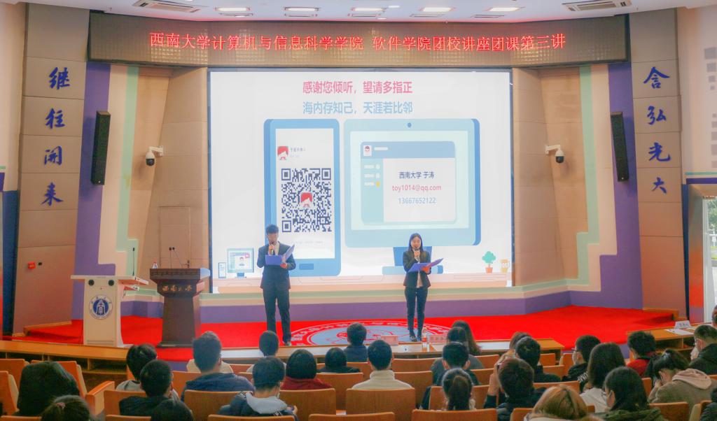 会议开始后,院团委书记邵羽西老师对参加本次团课的同学们表示欢迎,希望大家能在团课中获益,随后向大家介绍了此次团校讲座的主讲人学院党委宣传部副部长于涛。