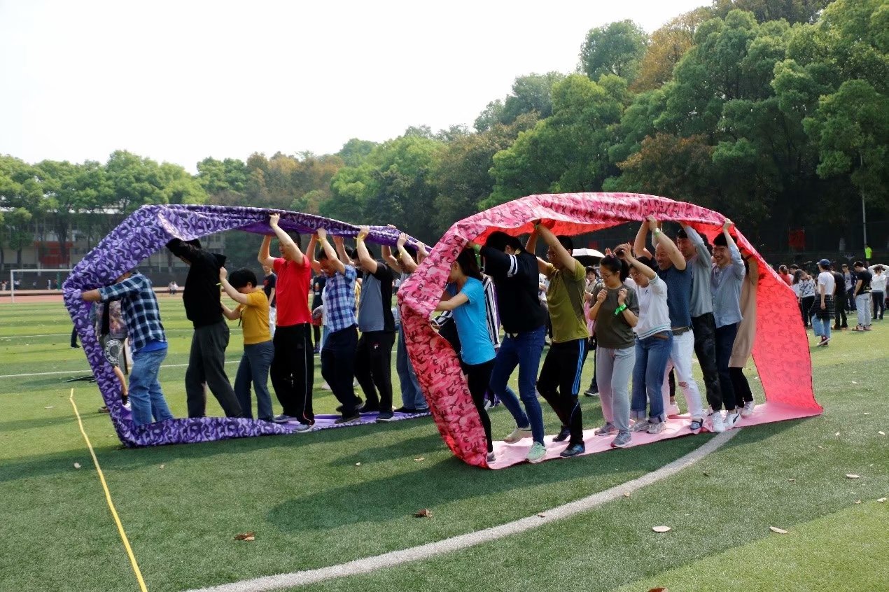 快乐第一,比赛第二,趣味运动会将快乐进行到底。一声声呐喊,一次次鼓掌,伴随着你们一步步向前奔跑,跳跃,投掷。于是,这里有了你们团结的、挥洒汗水的身影,更有你们可爱、有趣的合影。欢乐毛毛虫上,一张张笑脸洋溢着活力;搭桥过河游戏中,快乐被双手传递;地雷阵里,是脚步的寻寻觅觅;风火轮里,转动的是欢声笑语;投掷飞镖的你,将欢乐锁定……
