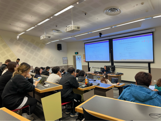 本次访学的一个重要目的是让同学们提前适应在西澳大学的学习,课程的情景令人兴奋和充实,教室氛围紧张而专注,充满了学术的气息。教授站在讲台上,分析讲解学生们的作业习题,他用生动有趣的演示和实例,将抽象的概念变成可视化的形式,让大家更容易理解和吸收。屏幕上显示着复杂的电路图和计算公式,同学们认真地记录着每一个重要的信息,主动提问并与教授们展开讨论,以拓宽他们的思维和理解。在这个课堂上,没有固定的答案,而是鼓励同学们探索、思考,提出自己的观点和解决方案。