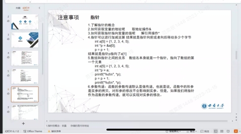 在《编程概述》课程学习板块,韩渊涛学长指出考试中可能会考查的题型以及对选择题判断能力的培养,重点强调了字符串输入输出、指针等有关知识点的注意事项和方法推荐,详细列举了许多考试中的实例来说明,方便同学们理解和记忆。