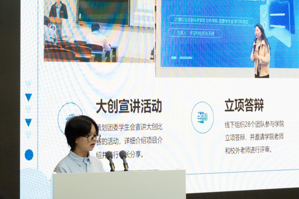 第十九届学院学生会主席团成员宋启宁代表第十九届学院学生会向大会做出了主题为“计忆成长”的工作报告,从理想信念、品牌活动、学生权益与学术科技等方面对过去一年学生会的工作进行回顾和总结,提出了对学生会工作的思考与对未来工作的建议。