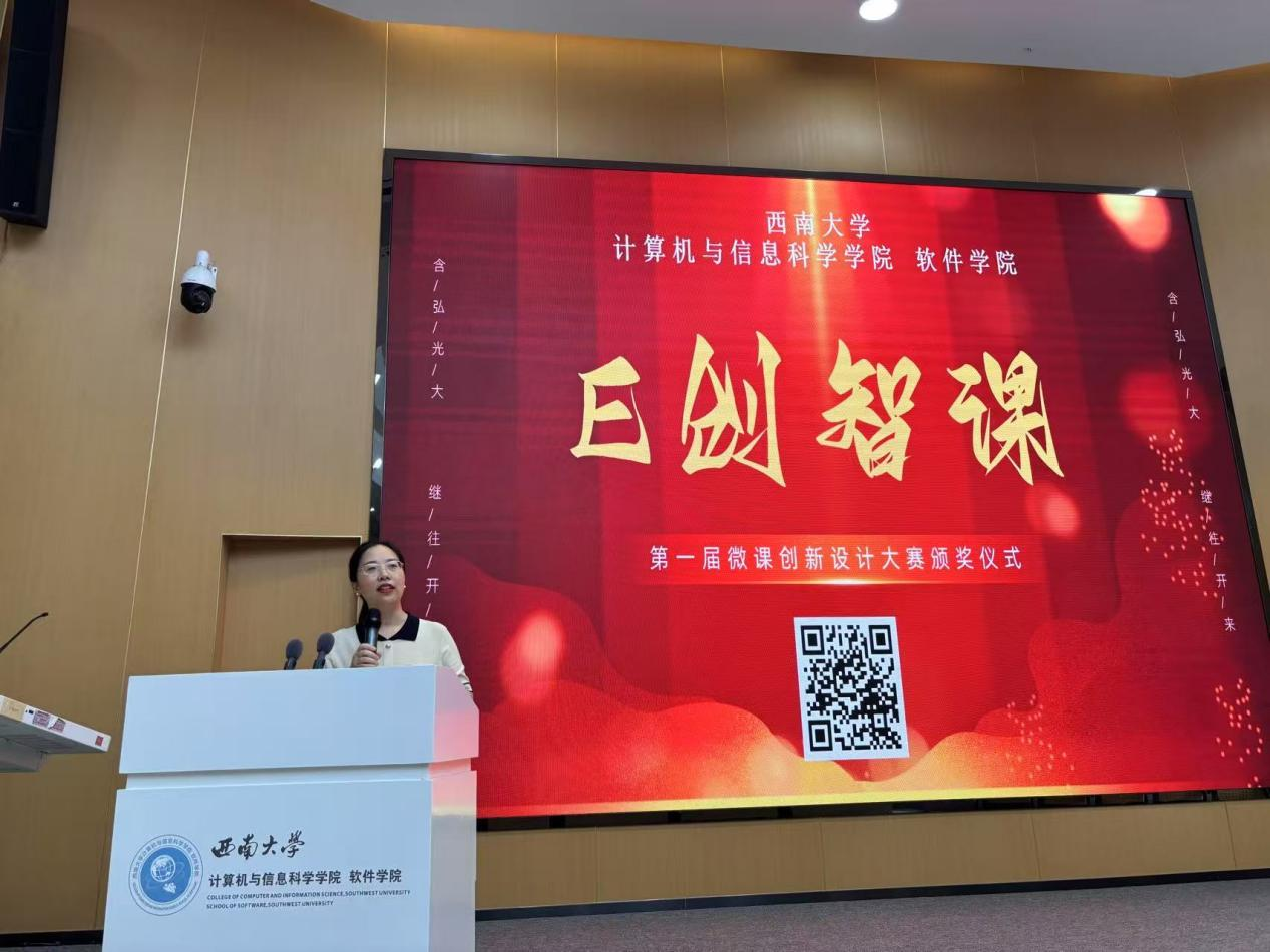 6月23日,PA视讯 软件学院首届“e创智课”师范生微课创新设计大赛颁奖仪式在25教一楼报告厅举行。学院副院长李娅、系主任王英、杨照芳老师、师范生辅导员以及计科师范专业2023级、2024级全体学生出席。