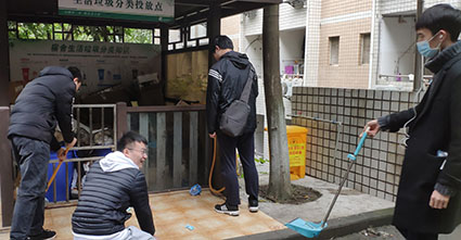 活动开始,党支部副书记李颖对本次活动方案及注意事项做详细的介绍,并以党小组为单位,根据参加活动人数以及场地的范围进行了明确的分工,划定责任区域;然后由党小组组长带领去各自的负责区域开展活动。到达宿舍区域后,党小组组长分配每个人具体任务。参与人员明确目标后紧接着进入工作状态,对寝室洗衣房卫生进行打扫清洁,并对楼层垃圾集中处进行规范整理。