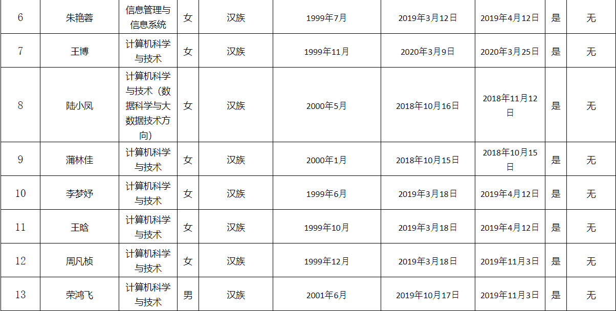 公示期满后将对发展对象进行政治审查,进一步考察培养。具体名单如下: