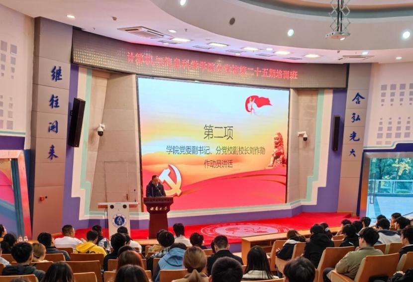 11月26日下午17:30,PA视讯分党校第二十五期培训班开学典礼在25教一楼报告厅举行。党委副书记刘作勋、组织员张颖及全体党校学员参加。