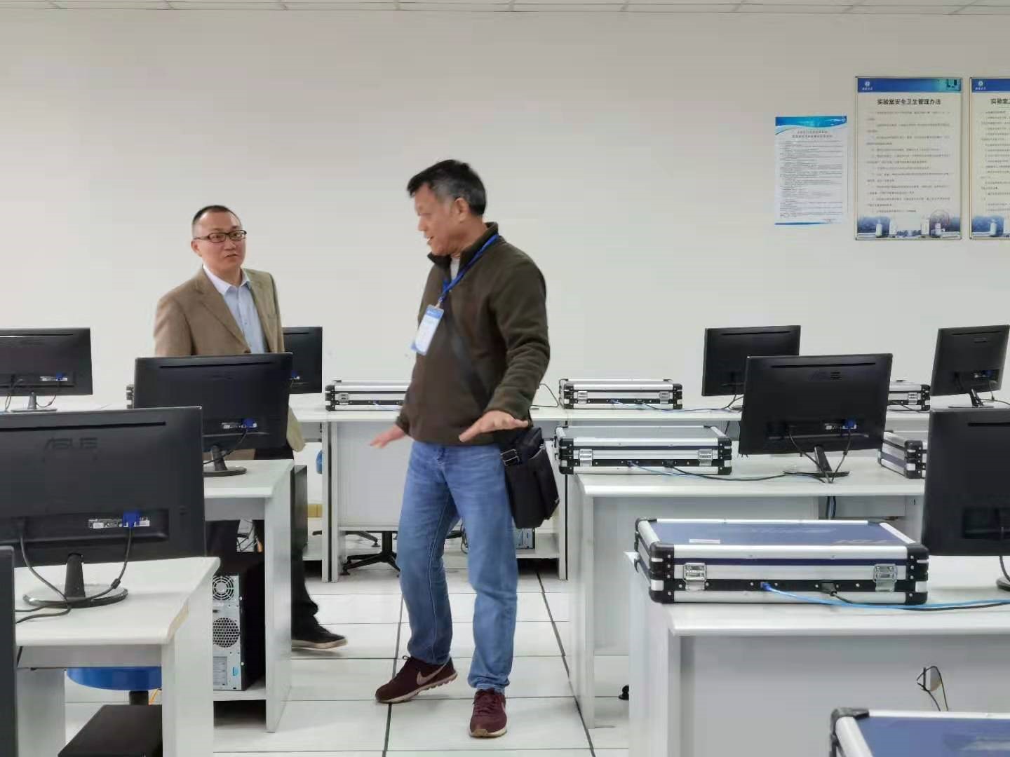 4.20下午,学校安全巡视员林跃强老师到学院进行了每月的实验室安全巡检工作。分管学院安全工作的韩毅副院长与林老师一起交流并抽查了部分本科实验室。