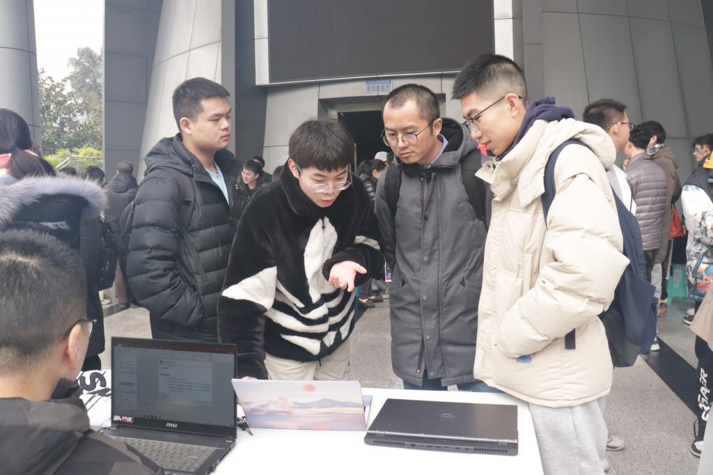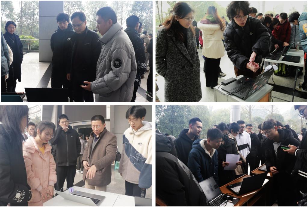 为展示信息时代的劳动教育成果,同时推动新工科教学模式和多元化教学改革,12月24日下午,我院软件工程专业《交互式媒体原理》课程在25教一楼大厅开设室外课堂,以“多元互动,媒NI不行”为主题的综合课程设计成果路演,让学生课程学习成果接受全院师生的“检阅”。学院党委书记靳拥军、院长肖国强、副院长/专业负责人陈武、教学副院长陶丽、PA视讯本科教学督导委员张虹、软件工程系主任赖祥伟以及软件工程系全体教师到现场参观作品展,与学生进行了互动交流,对此次路演活动表示了肯定并提出了宝贵建议。