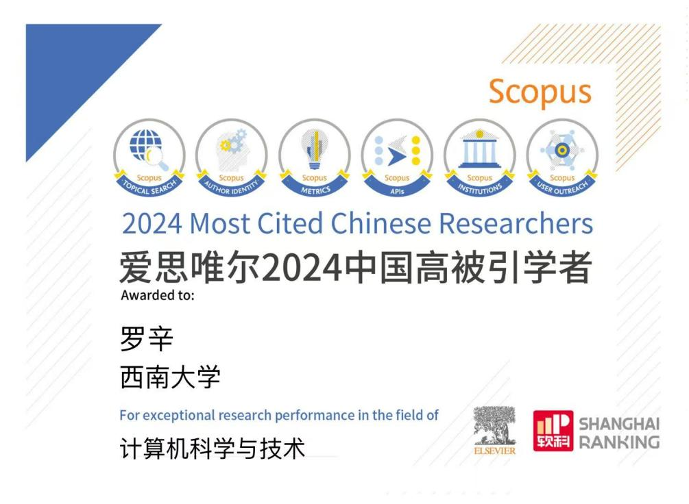 2025年3月25日, 爱思唯尔(Elsevier) 正式发布2024“中国高被引学者” (Highly Cited Chinese Researchers)榜单。学院罗辛教授入围“计算机科学与技术”学科“高被引”榜单,这也是罗辛教授继2022年入围该“高被引”榜单后,连续第3次入围。2024“中国高被引学者”上榜共计6388人,来自547所高校、企业及科研机构,覆盖了...