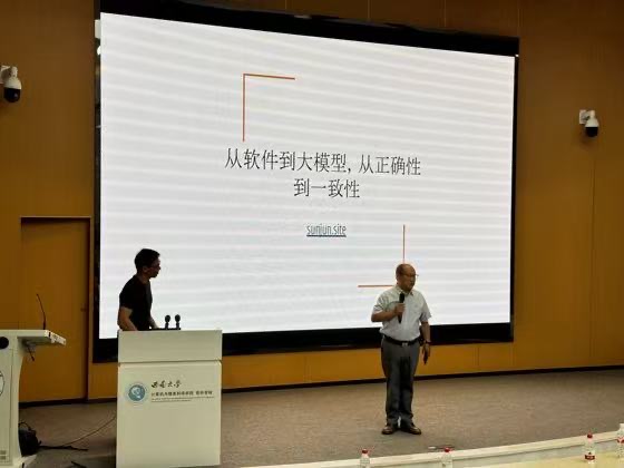2025年5月27日上午,学院“弘毅零一”学术报告会在25教0114报告厅隆重举行。新加坡管理大学孙军教授应邀作题为《从软件到大模型,从正确性到一致性》的专题报告,为150余名师生呈现了一场前沿学术盛宴。本次学术报告由刘志明教授主持。 作为形式化验证与可信人工智能领域的权威专家,孙军教授以生活化的语言开启学术漫谈...